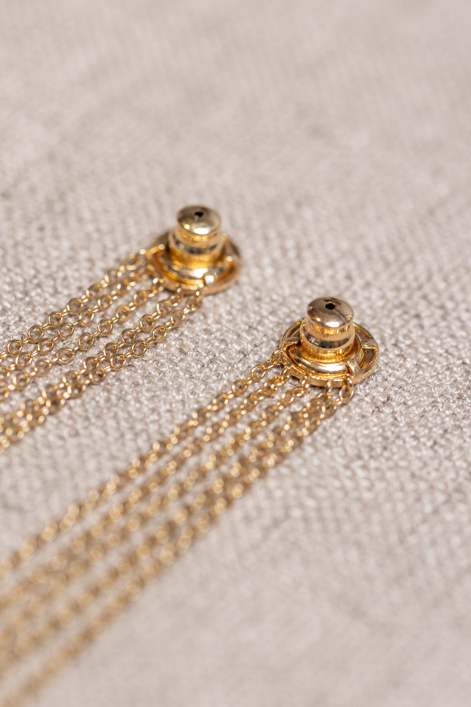 Tarraxa em fios de corrente. Modelo grande. Cinco fios de corrente portuguesa. Correntes em metal dourado. Metal certificado. Produção artesanal.